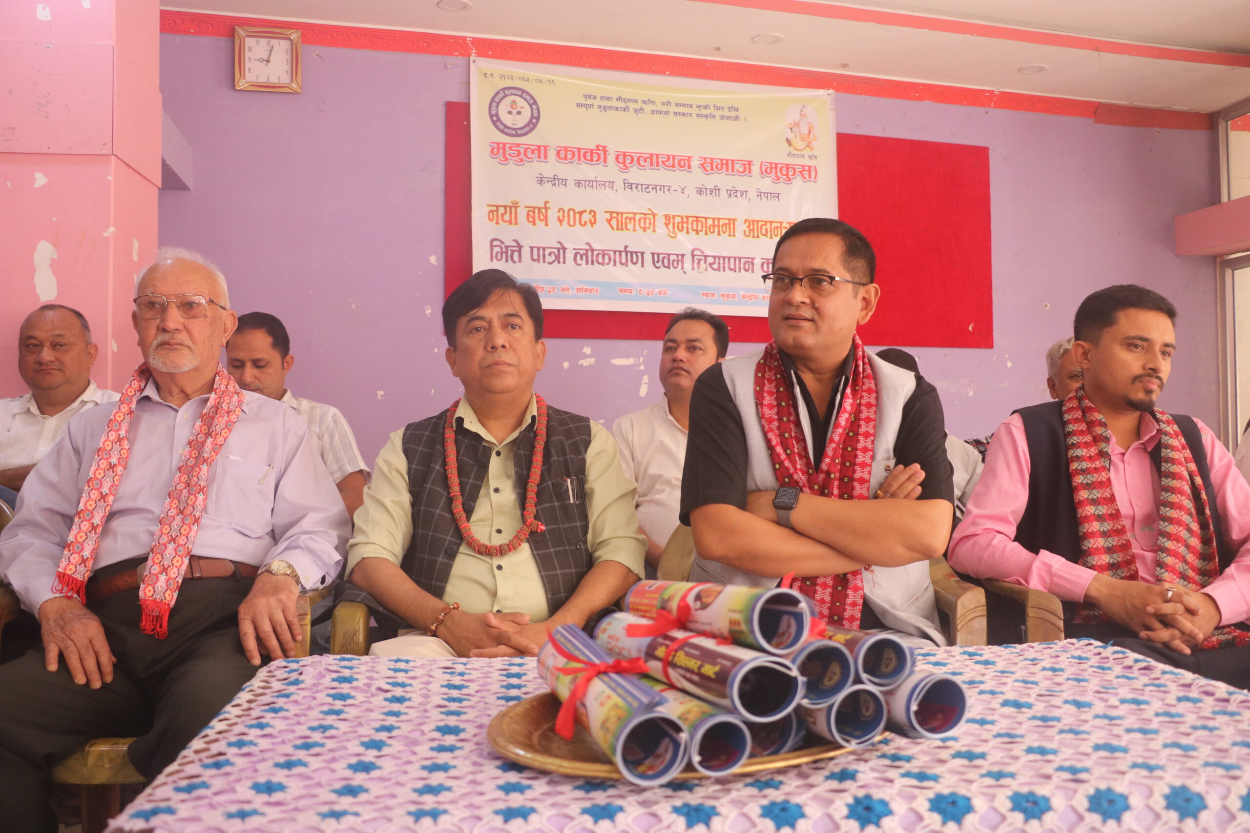 चैत्र २८ । विराटनगरस्थित मुडुला कार्की कुलायण समाजले आसन्न नयाँवर्ष २०८३ सालको अवसरमा शुभकामना आदानप्रदान तथा भित्ते पात्रो विमोचन कार्यक्रम गरेको छ ।