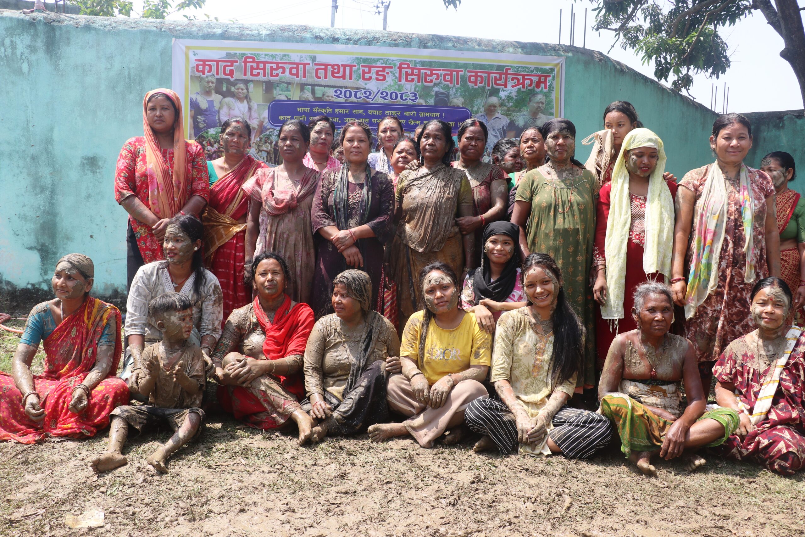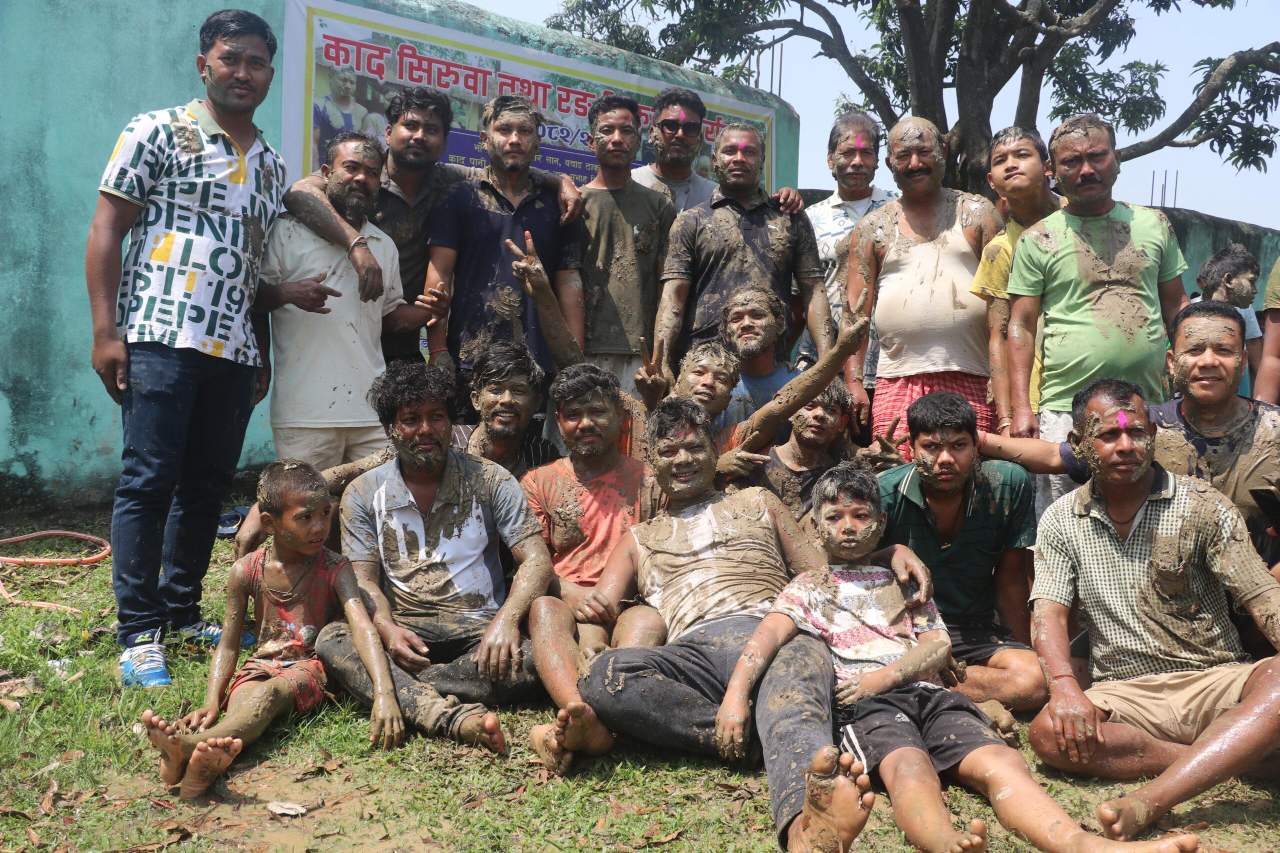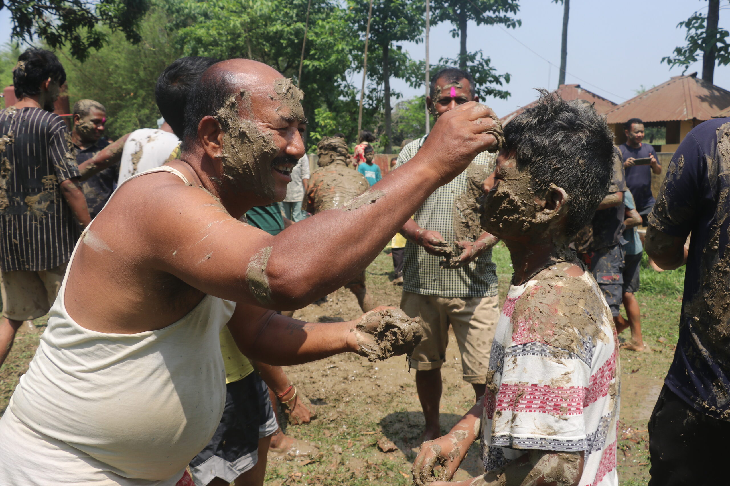 फोटो क्याप्सनःनयाँ वर्षको पूर्वसन्ध्यामा मोरङको कटहरी गाउँपालिका काद् (हिलो) सिरुवा मनाईएको छ । यो पर्वमा एकअर्कालाई माटोको टिका लगाई आशिर्वाद लिनेदिने तथा हिलो छ्यापा–छ्याप गर्ने चलन छ ।